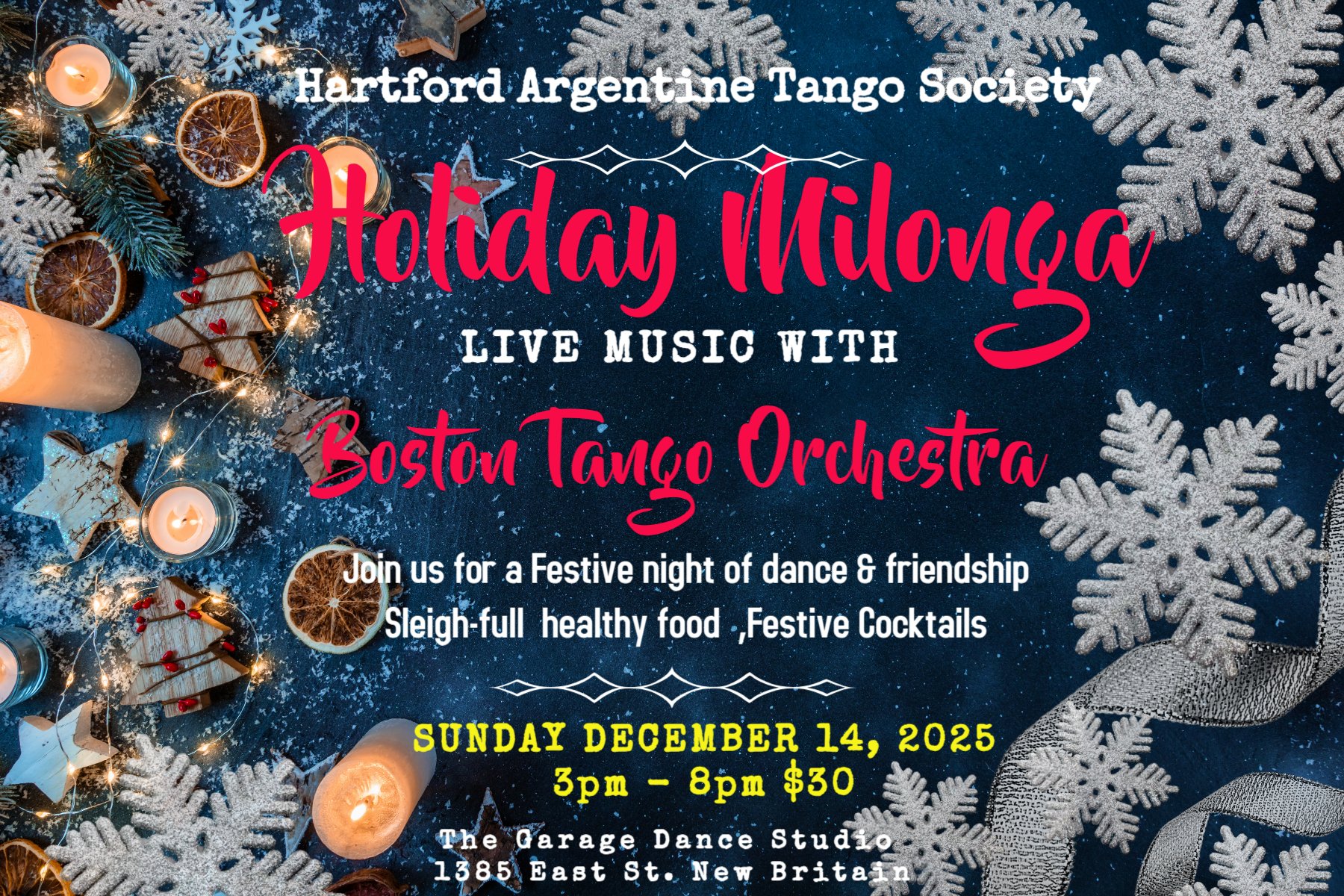 Filter CategoriesAllDancesClassesSpecial EventsOther Holiday Milonga with Boston Tango Orchestra Tango Day and Milonga with Los Ocampo HARTS Beginners Class of Argentine Tango starting oct 1st 2025 Bachata Tuesday HARTS Master Interm. Tango Classes HARTS Milongas and Milonguitas 2025 HARTS TANGO PRACTICAS Wednesdays 8:30-10pm $10 It's A Sunday Soiree WCS, Hustle , Ballroom, NC2 step every Second Saturday of the month 7:00 - 11:00pm Noches de Salsa July 25th Milonga Dance Socials and Parties SALSA/LATIN Dance Classes & Mini Social Dance Purchase A Gift Certificate Class & Event Cancellations Location/Directions/Maps Private Dance Lessons