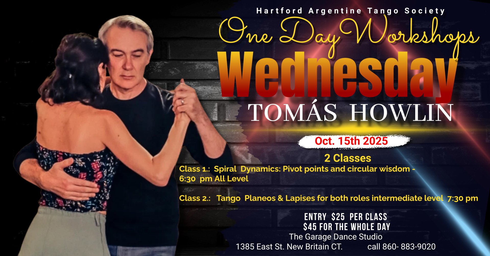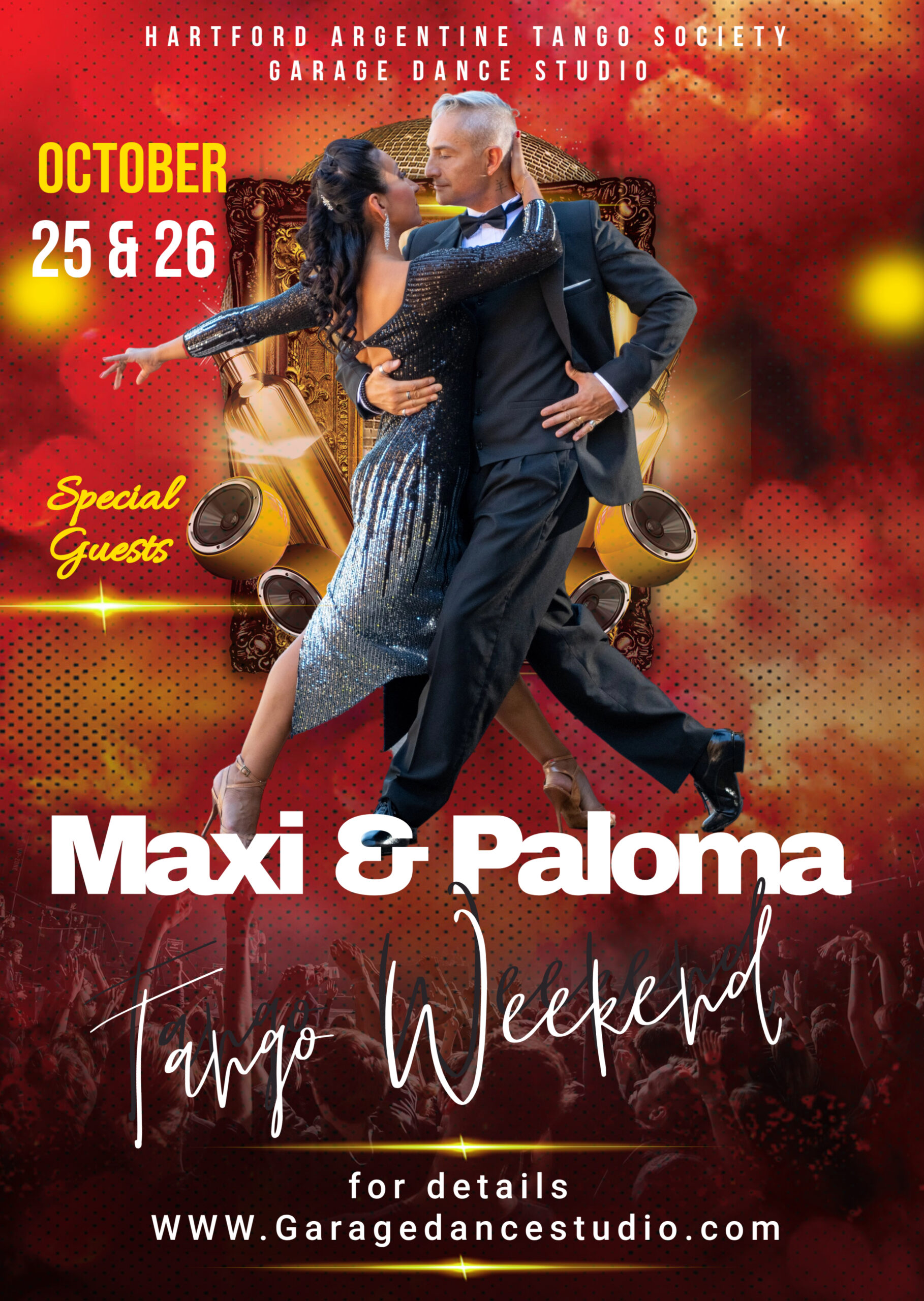 Welcome to The Garage Dance Studio Filter CategoriesAllDancesClassesSpecial EventsOther HARTS Halloween Milonga with PALOMA & MAXIMILIANO- Miami Tango Workshop with Tomas Wed October 15th HARTS Beginners Class of Argentine Tango starting oct 1st 2025 Tango Weekend with Paloma Berrios & Maximiliano Alvarado Bachata Tuesday HARTS Master Interm. Tango Classes HARTS Milongas and Milonguitas 2025 HARTS TANGO PRACTICAS Wednesdays 8:30-10pm $10 It's A Sunday Soiree WCS, Hustle , Ballroom, NC2 step every Second Saturday of the month 7:00 - 11:00pm Noches de Salsa July 25th Milonga Dance Socials and Parties SALSA/LATIN Dance Classes & Mini Social Dance Purchase A Gift Certificate Class & Event Cancellations Location/Directions/Maps Private Dance Lessons