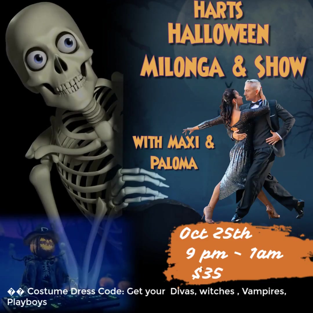 Filter CategoriesAllDancesClassesSpecial EventsOther HARTS Halloween Milonga with PALOMA & MAXIMILIANO- Miami Tango Workshop with Tomas Wed October 15th HARTS Beginners Class of Argentine Tango starting oct 1st 2025 Tango Weekend with Paloma Berrios & Maximiliano Alvarado Bachata Tuesday HARTS Master Interm. Tango Classes HARTS Milongas and Milonguitas 2025 HARTS TANGO PRACTICAS Wednesdays 8:30-10pm $10 It's A Sunday Soiree WCS, Hustle , Ballroom, NC2 step every Second Saturday of the month 7:00 - 11:00pm Noches de Salsa July 25th Milonga Dance Socials and Parties SALSA/LATIN Dance Classes & Mini Social Dance Purchase A Gift Certificate Class & Event Cancellations Location/Directions/Maps Private Dance Lessons